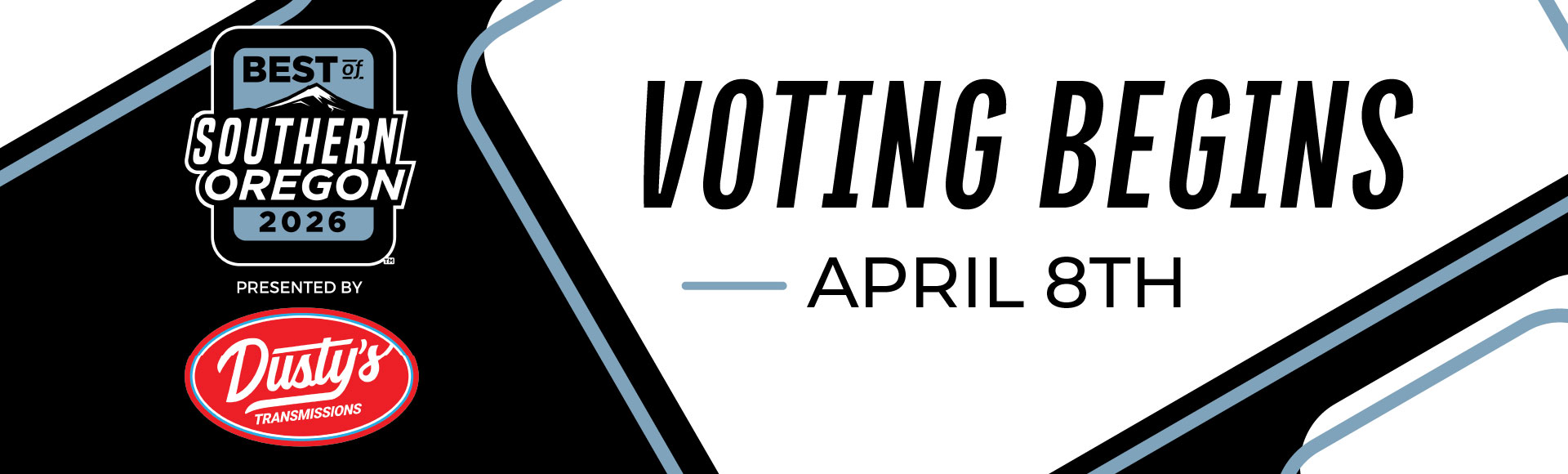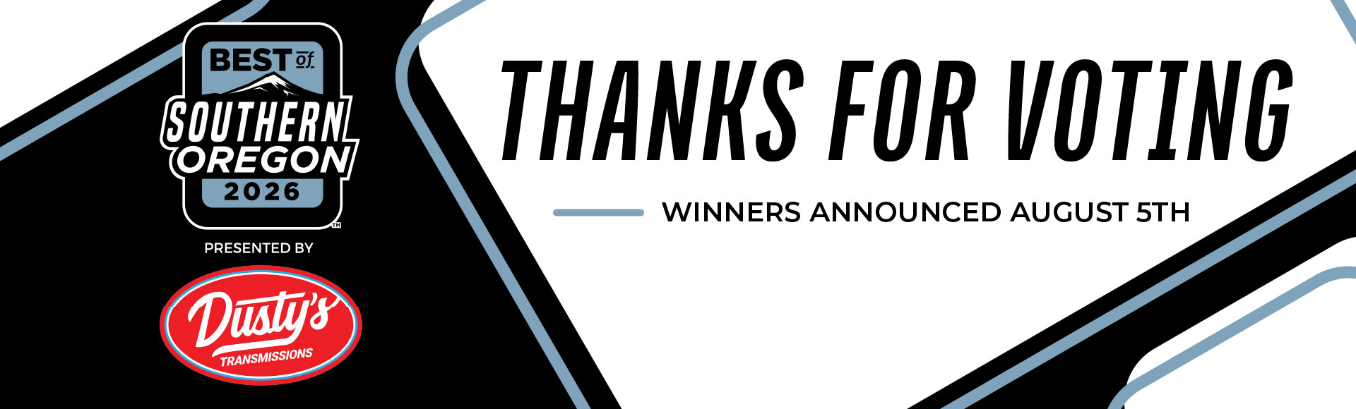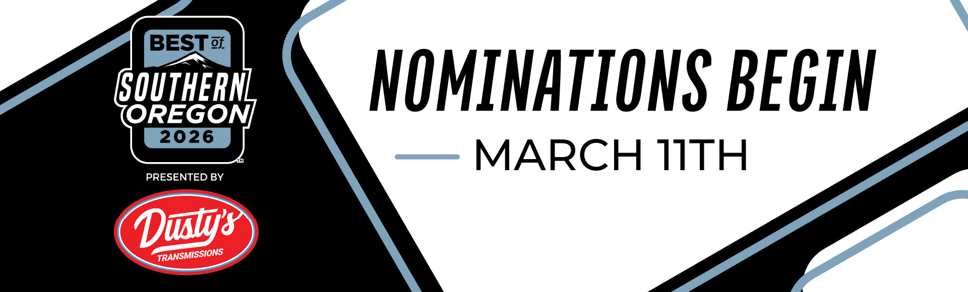 Nominations starts in ... Submit Your Nomination! Voting starts in ... Voting Starts Here! Results will be published in ... Your Best of Southern Oregon 2026 Winners The results will be published Wednesday, August 5th, 2026 at 12:00pm